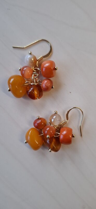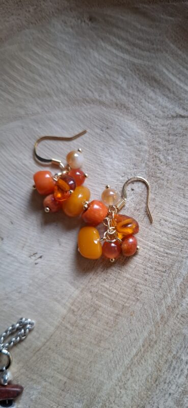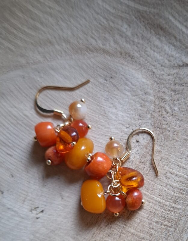 Trosje 4 cm totaal Amber en koraal, wat een kleurtjes!