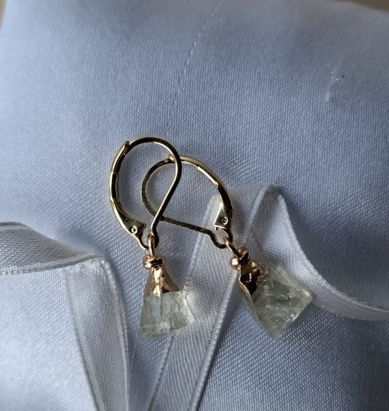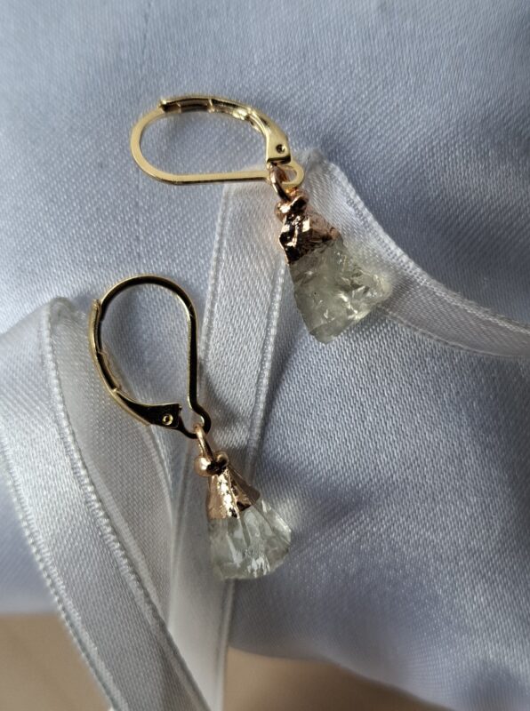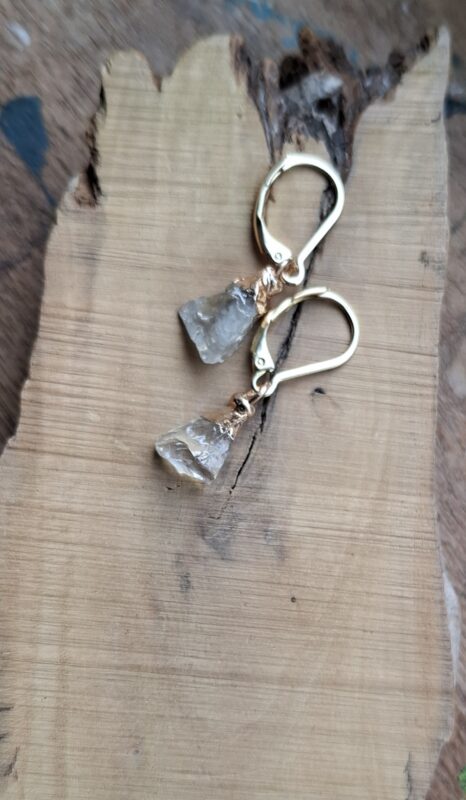 Kleine ruwe brokjes aan fijne haakjes Ruim 3 cm totaal Er is eventueel een kettinkje bij met eenzelfde brokje
