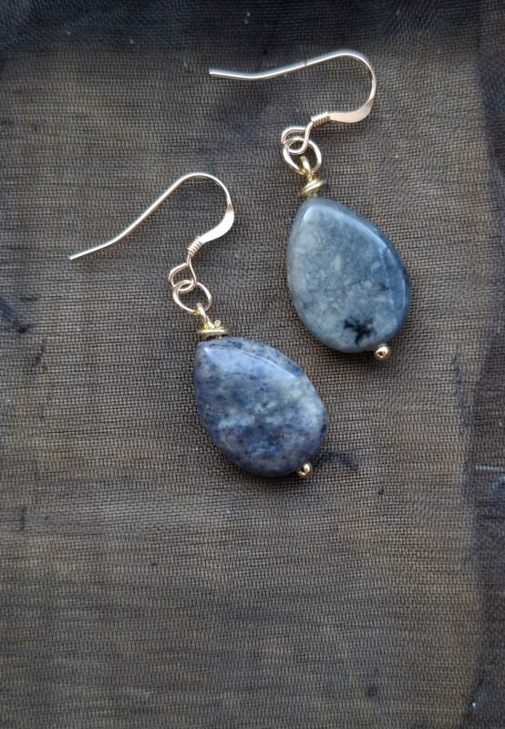 Blauwgrijs met zwarte en lichte pikkeltjes