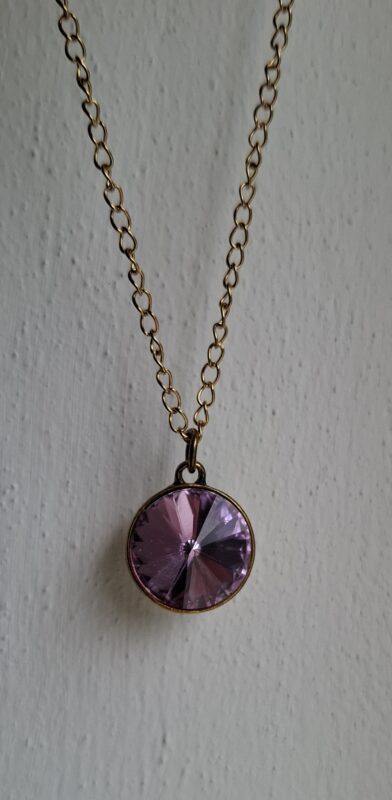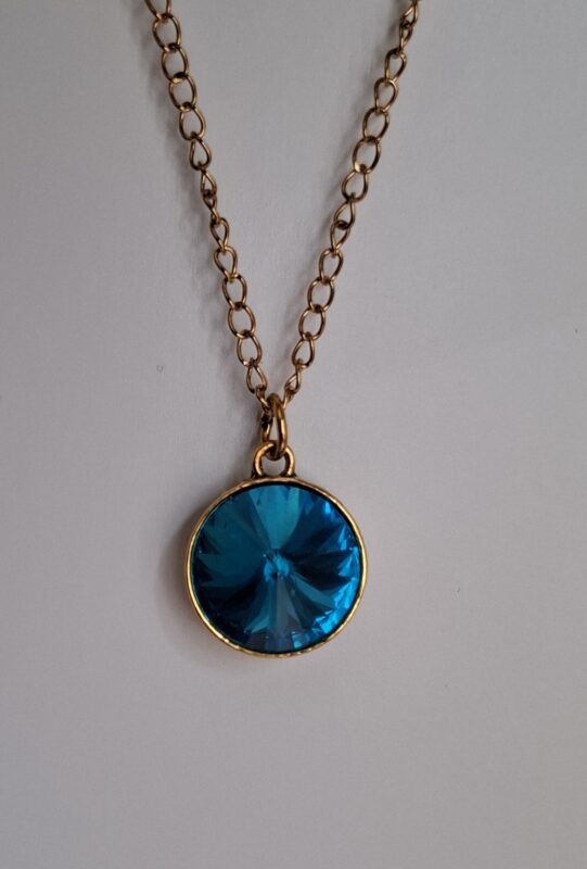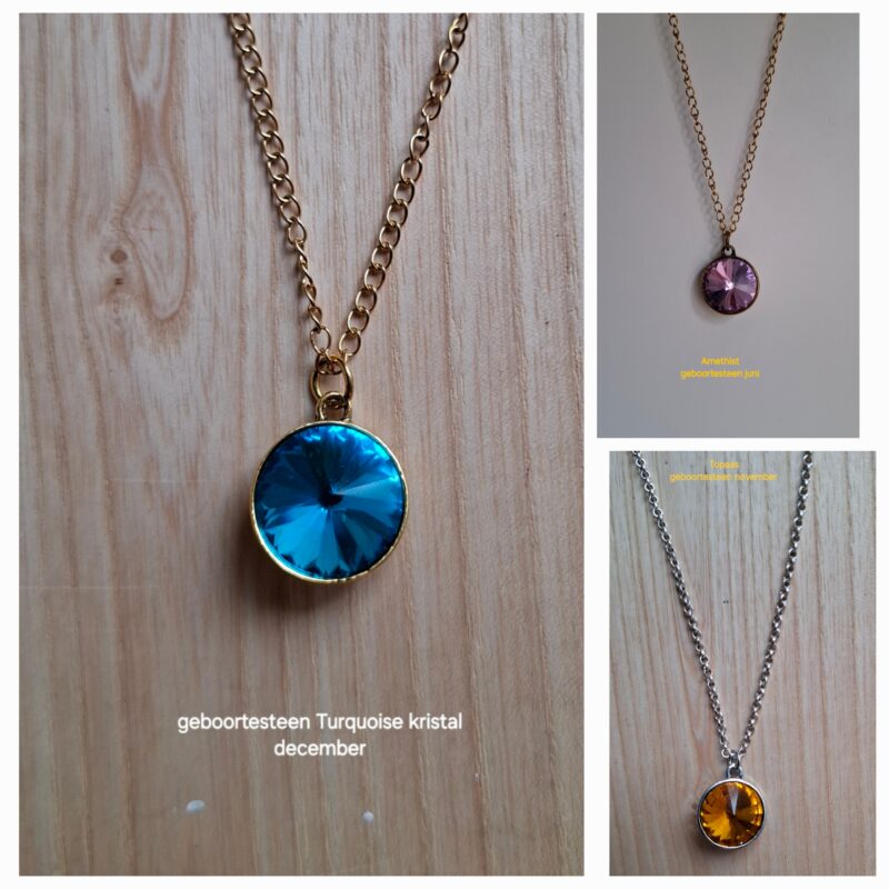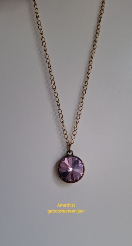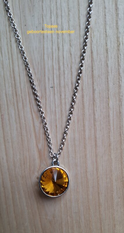 Prachtig Barnsteenkleurige kristal aan antiek verzilverde ketting
