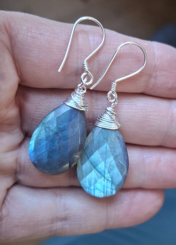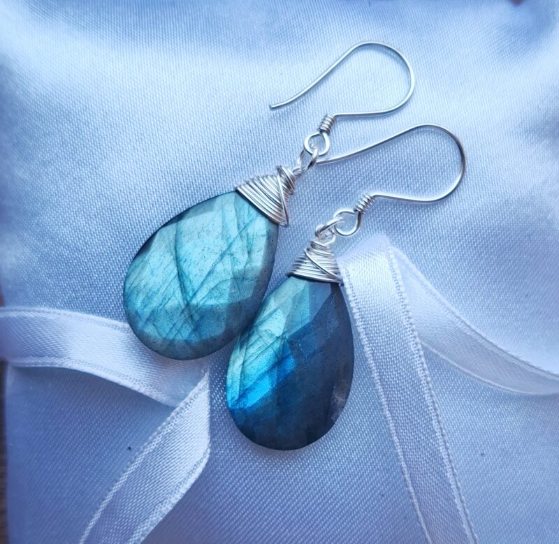 Grote facetgeslepen druppels met hele mooie blauwe flits!!