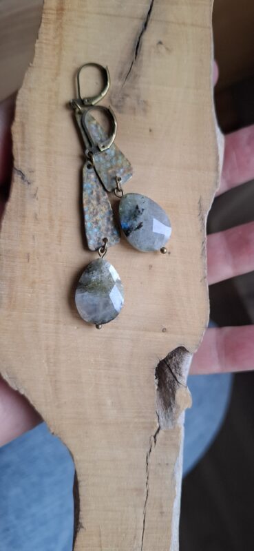 Prachtig geslepen, met de mooie Labradoriet kleurtjes erin…in het zonlicht nog mooier