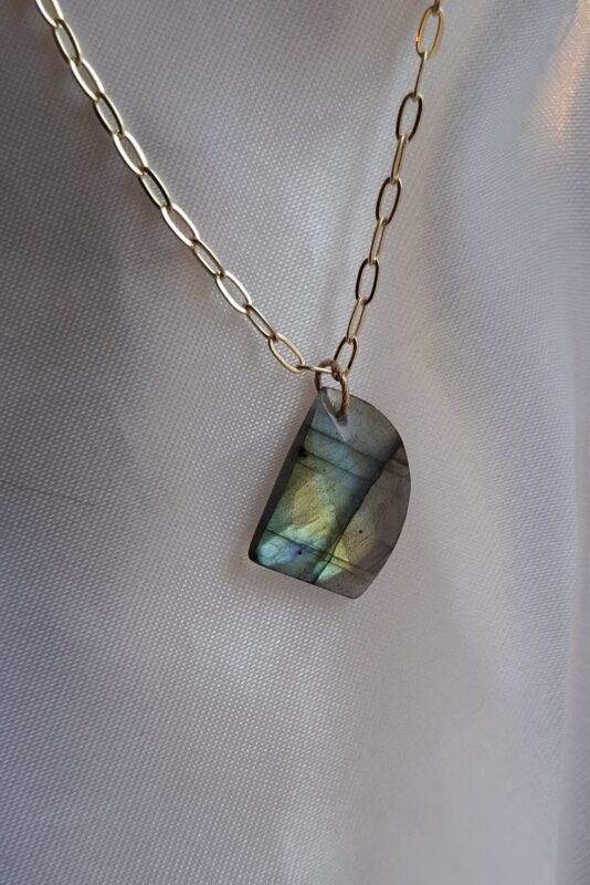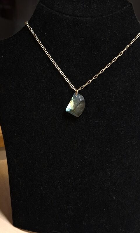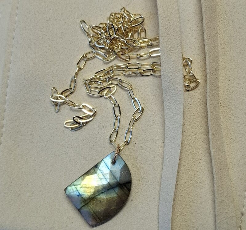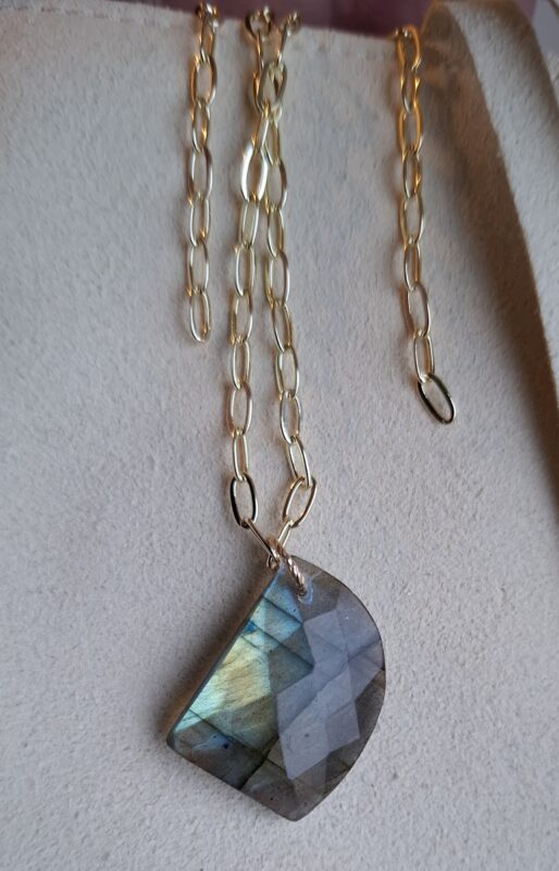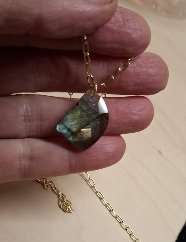 Beeldschone steen, grappige vorm, prachtige flits goud blauw groen