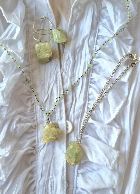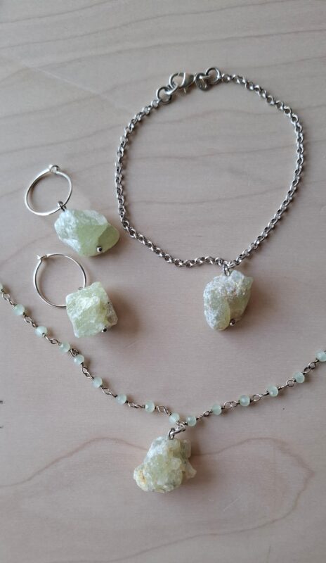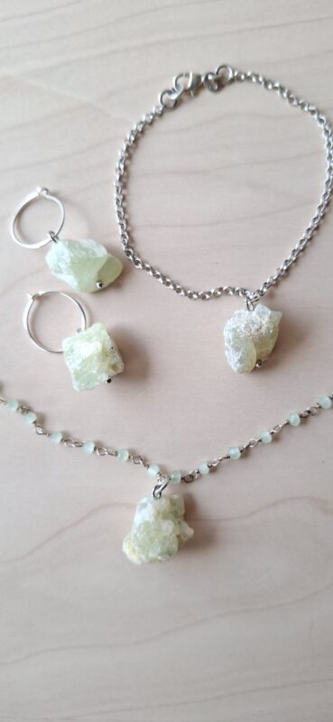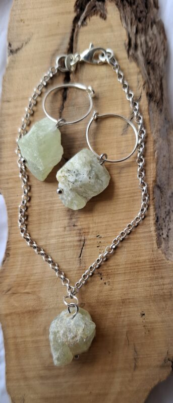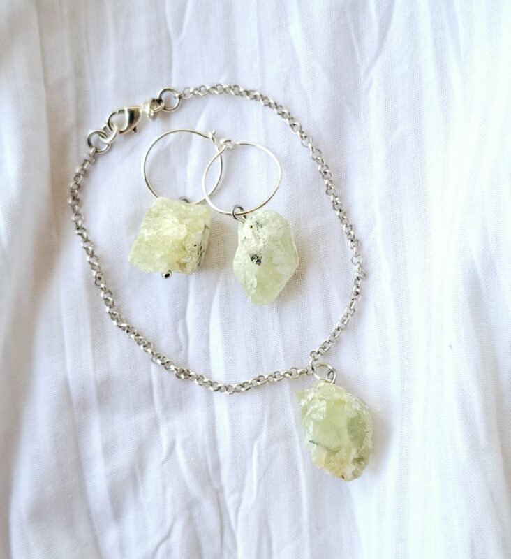 Brokjes ruwe prehniet aan zilver