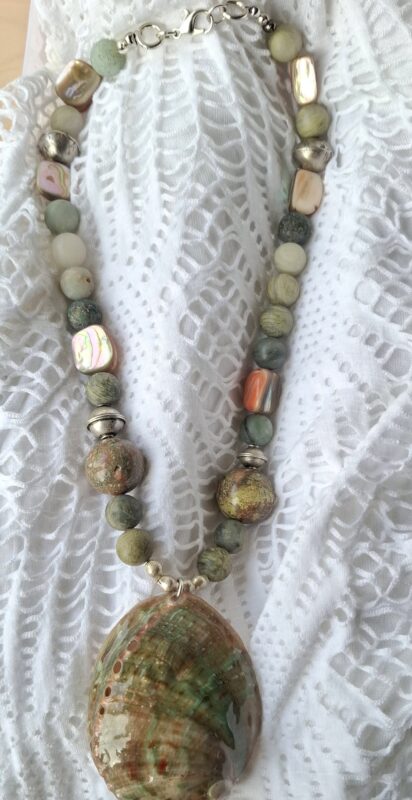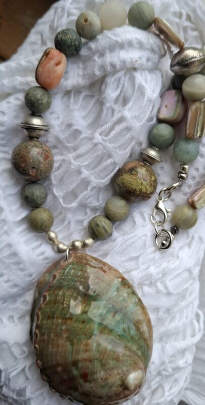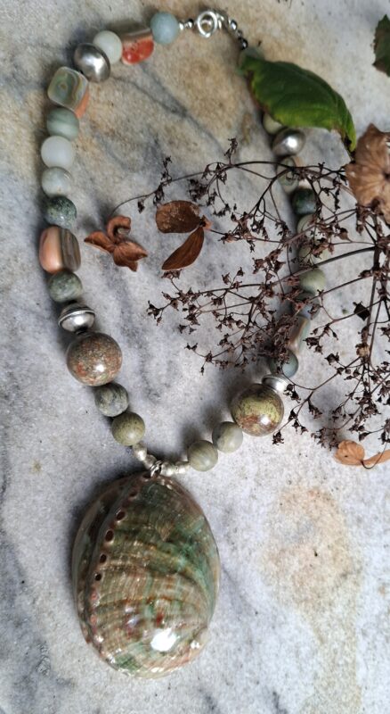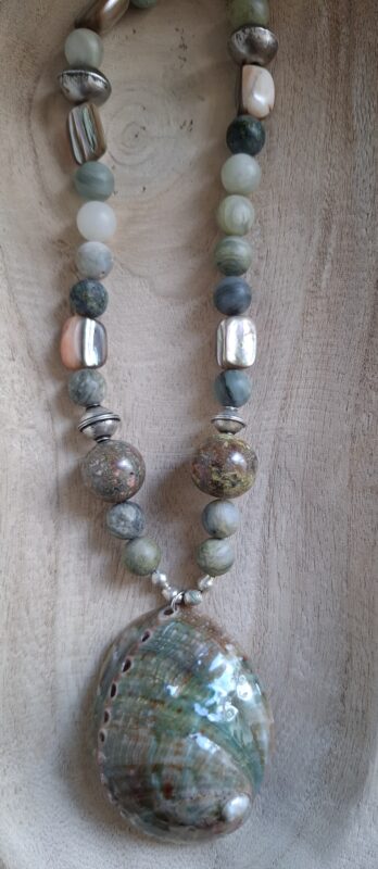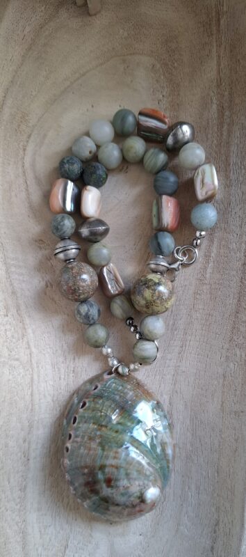 Deze wauw ketting met prachtige parelmoer schelp (Spanje) met nog meer moois en Berber is een echte feest binnenkomer!!!