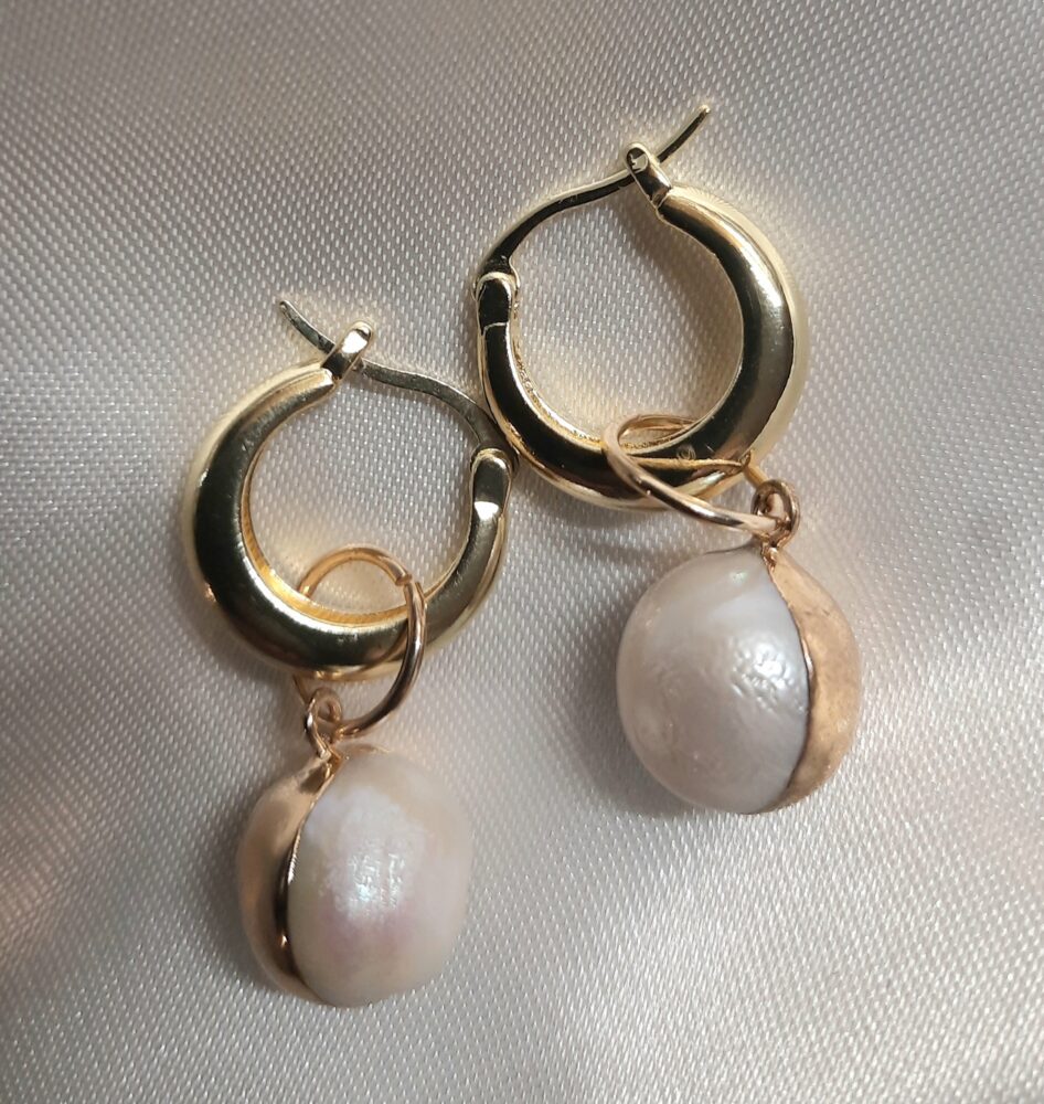 Prachtige parels, half goud aan stevige creolen