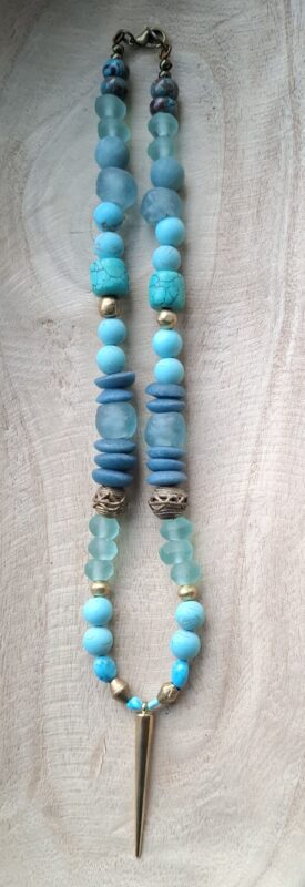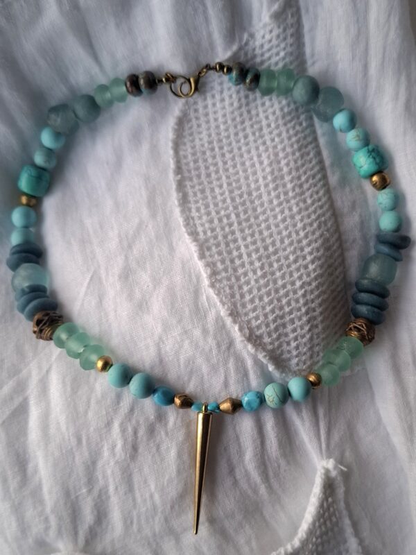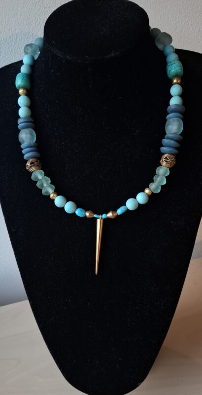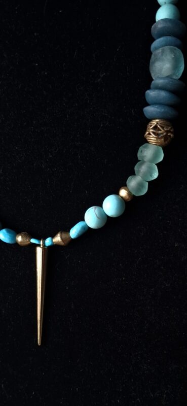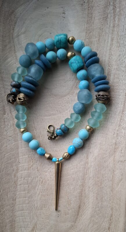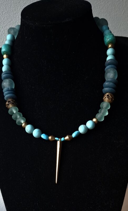 Oude glaskralen Afrika Turquoise mat en glans wat Berber elementen (handgemaakt) en meer 52 cm Beeldschoon!