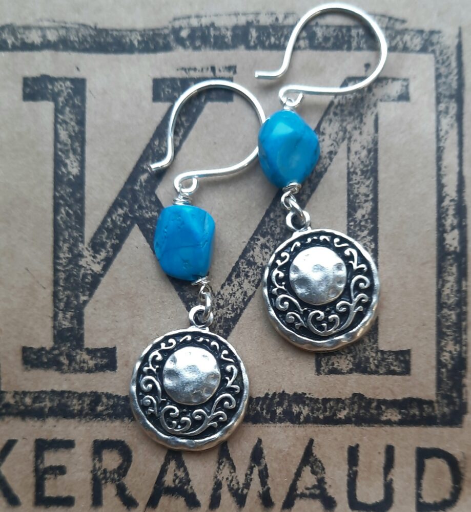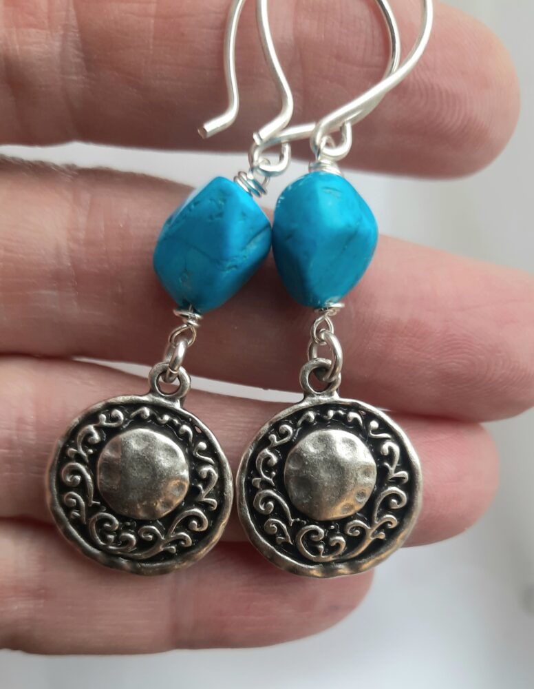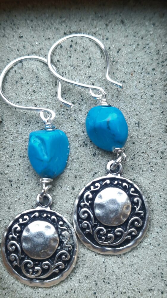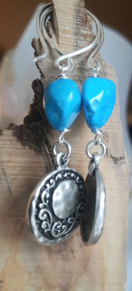 Prachtige brokjes Turquoise, meegenomen van Elba, met echt mooie handgemaakte elementjes 6 cm totaal