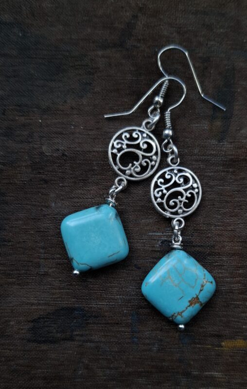 Turquoise ruitjes met antiek verzilverd