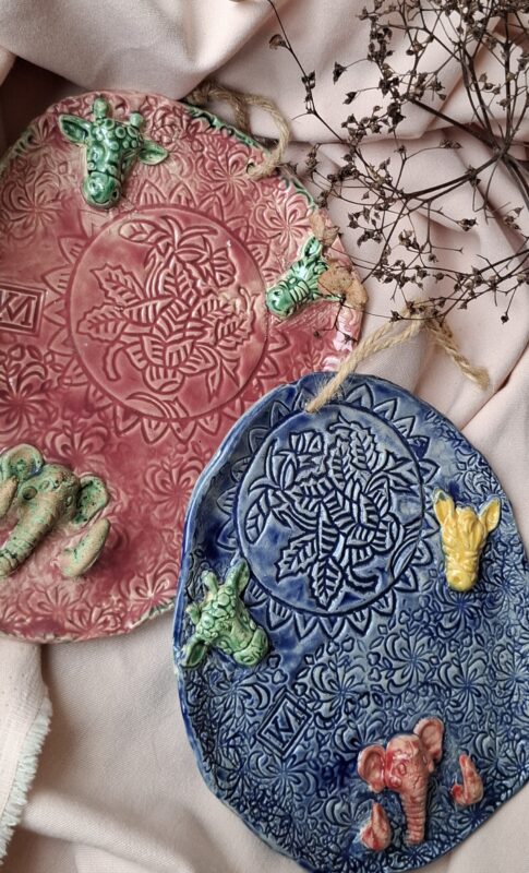 Blauw en oud roze bijvoorbeeld zoals op de foto’s